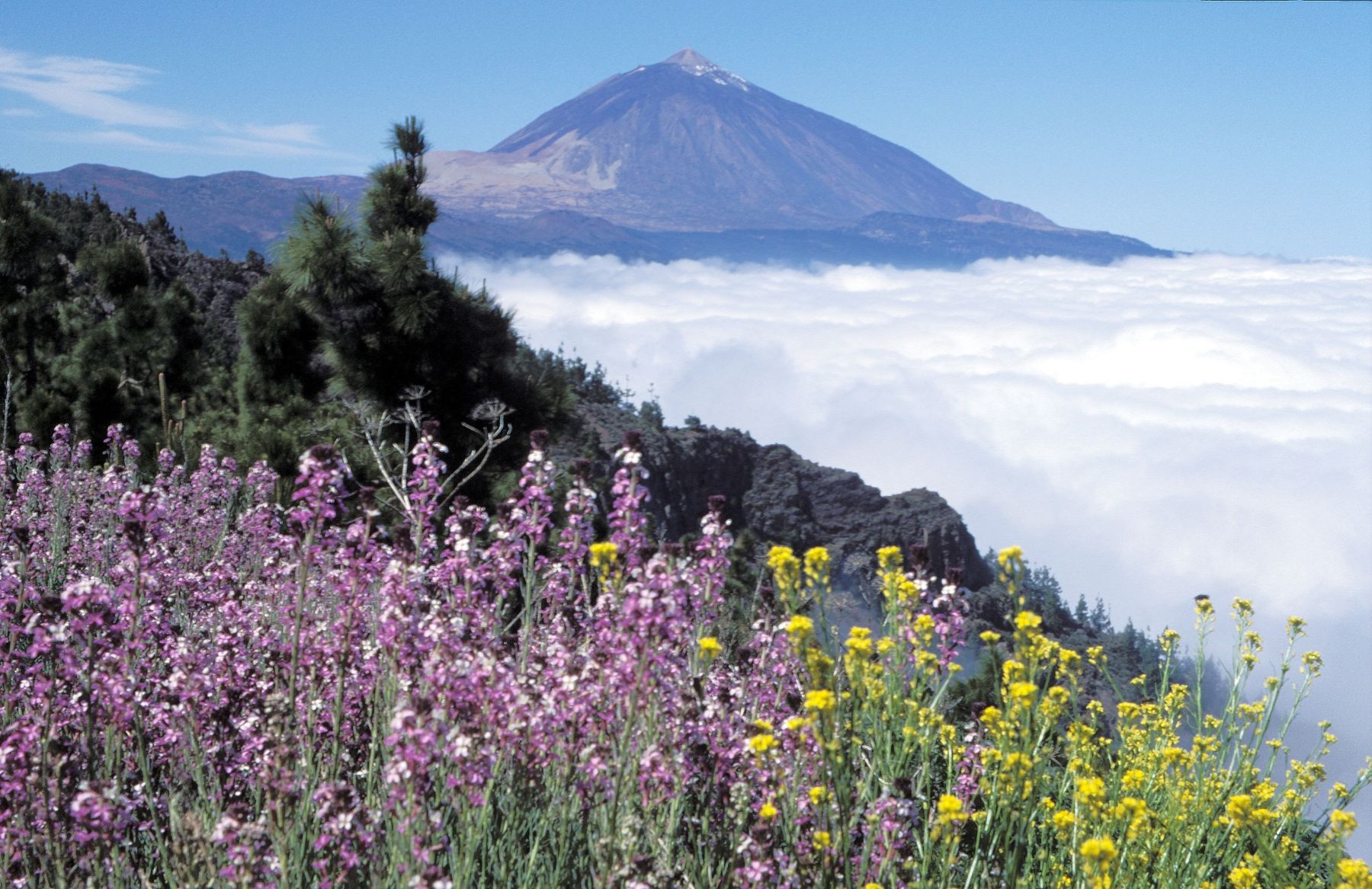 oberhalb der Wolken. Der Gipfel des Teide ist 3718m hoch.