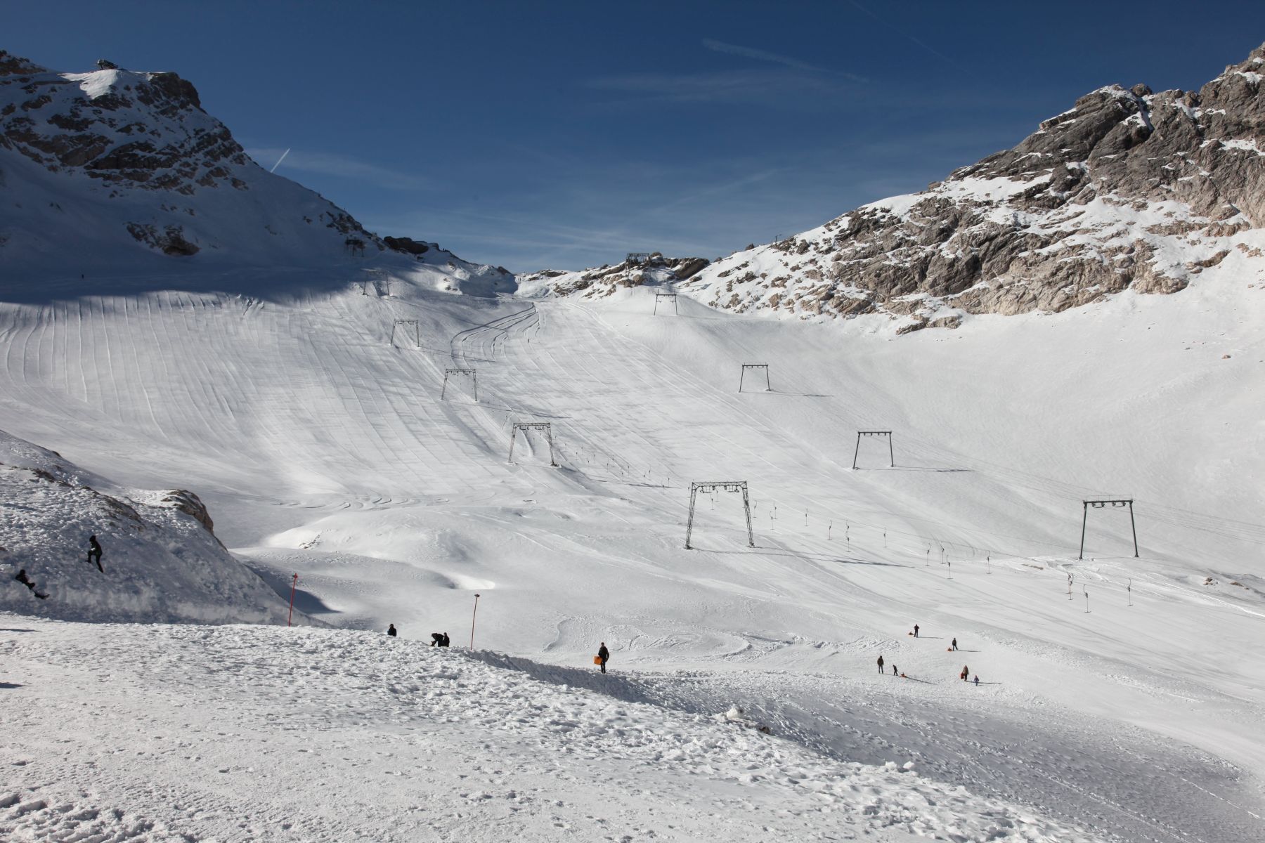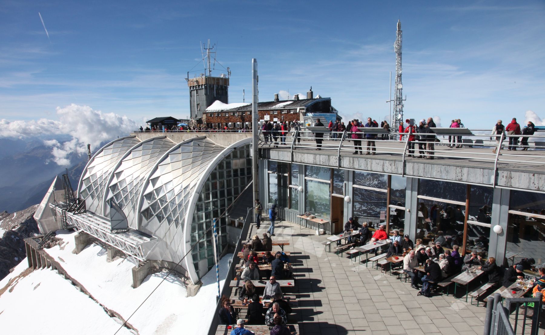 Das Gipfelplateau der Zugspitze, komplett überbaut zu einer Fußgängerzone. Der